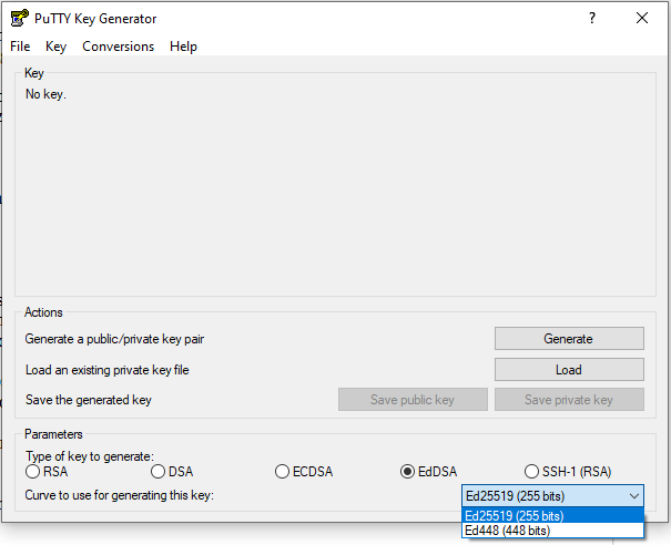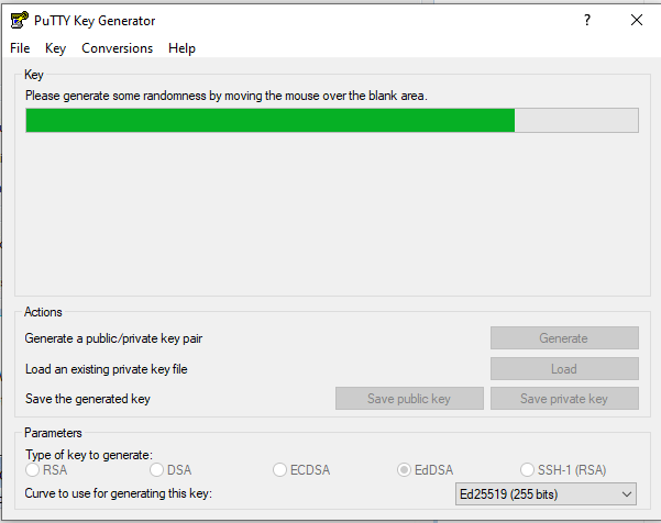Jeśli potrzebujesz utworzyć klucze SSH na Windowsie, możesz użyć do tego aplikacji PuTTYgen (do pobrania tu: https://www.puttygen.com/ ). Po otwarciu programu wybierz rodzaj i długość klucza. Wygeneruj klucze wciskając przycisk ‘Generate’.